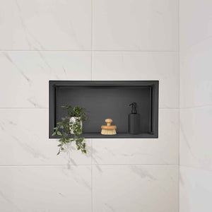 Niche de douche murale Layla en acier inoxydable noir mat, 12" x 24"