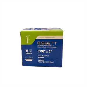 • Les fixations Bissett offrent une compatibilité universelle, vous assurant ainsi leur compatibilité avec votre outil • Agrafes à couronne moyenne de la Série N • Calibre : 16 • Fini : acier inoxydable • Dimensions (L x H) : 7/16" x 2" • Emballage de 3 000 unités