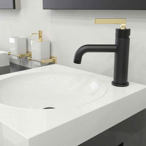 Robinet pour lavabo de salle de bain avec contrôle de volume à 1 poignée INDY, noir mat et or mat