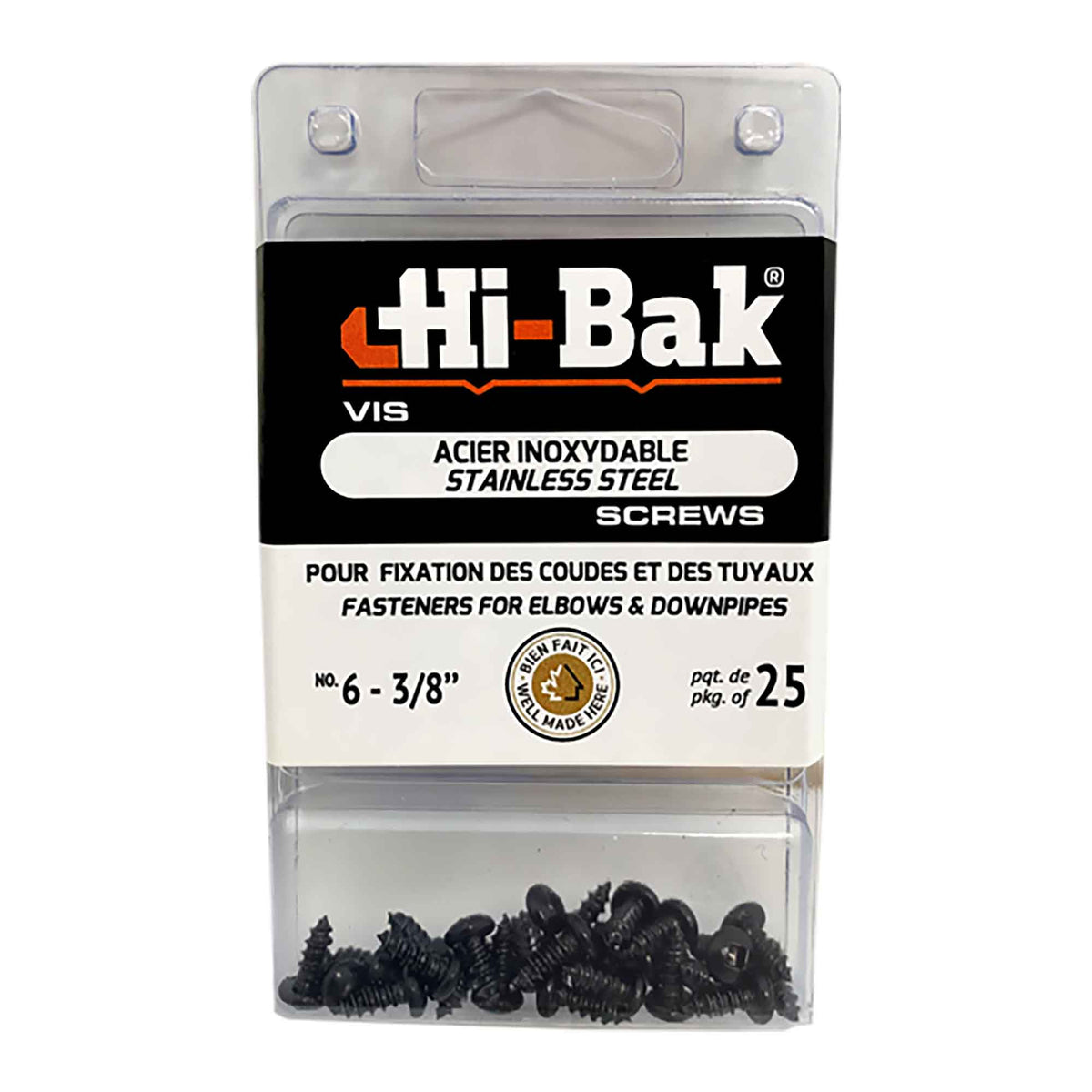 Stainless Steel Screws of #6 x 3/8'' for Fixing, Elbow and Downpipe, Black (25 Units)