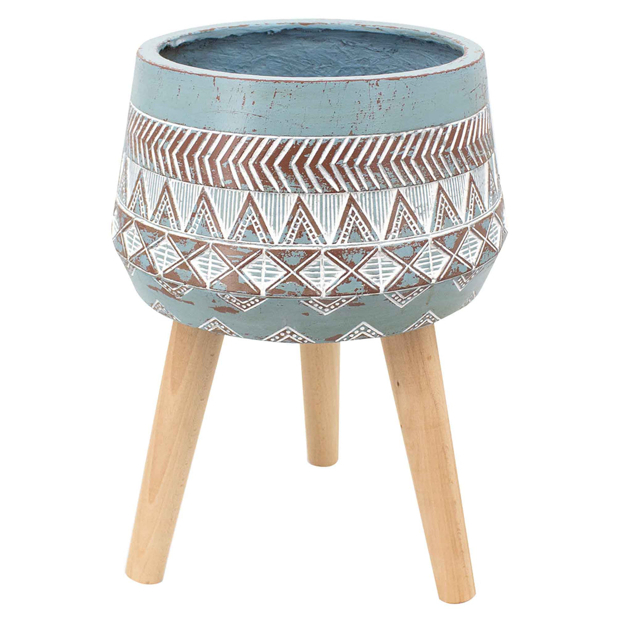 MGO Blue and Brown Planter on Legs, 8'' x 13''