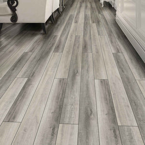 • 4.5 mm thick SPC vinyl flooring including a 1 mm integrated membrane • 0.20 mm wear surface • Woodgrain finish • 4-sided Micro-V edges • Valinge 2G click system • Water resistant • Color: Yukon Grey • Plank dimensions (W x L): 5" x 48"