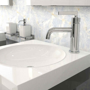 • Our INDY faucet is as much a pleasure for the eyes as it is to the touch • It’s geometric lines end with finesse thanks to well-studied curves, creating the perfect industrial faucet with knurled accents • Cartridges: long-lasting ceramic cartridge, FC9M8 • Cover plate included • Drain: presto drain included • Spout flow: maximum flow of 3.8 L/min (1.0 gpm) at 60 psi • Finish: polished chrome • Dimensions: 6.22'' x 1.57'' x 7.36''