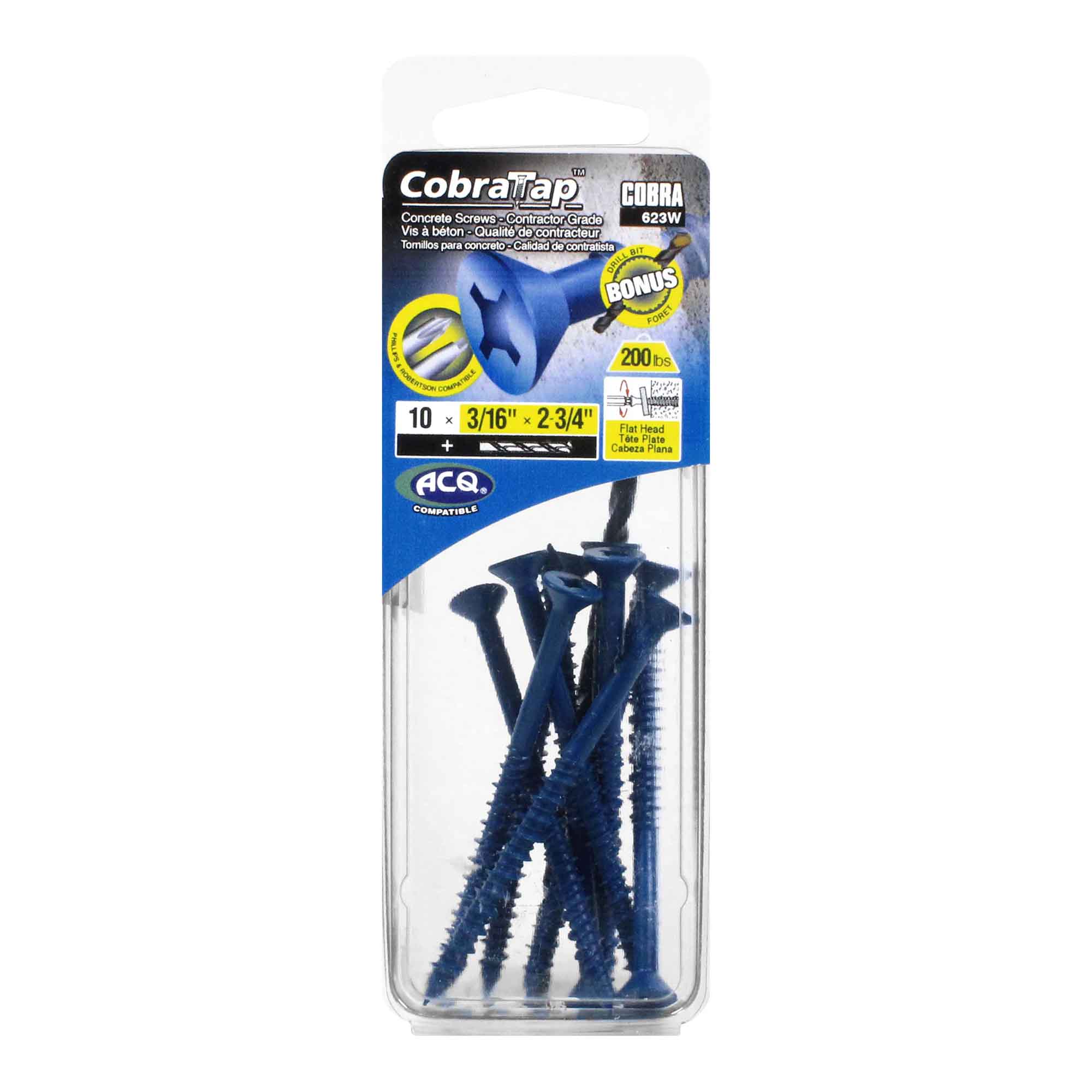 CobraTap Flat Head Concrete Screw of 3/16" x 2-1/4'', 10 Units