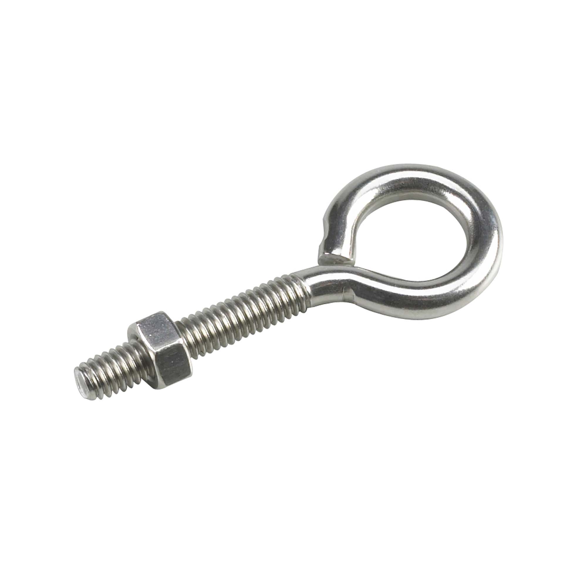 • Versatile hook featuring a nut and loop / eye used for hanging various items. Ideal for indoor and outdoor use • Easy to install for all your hanging needs • Material: stainless steel • Safe working load: 36.3 kg • Color: stainless steel • Length: 10.2 cm • Diameter: 6.35 mm