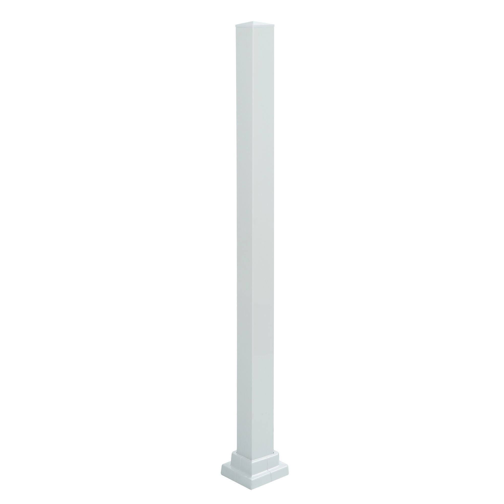 • 2'' square white aluminum mounting post for 36'' high railing • Includes plastic base cover, gasket and adjustment shims • Post height: 37-1/2''