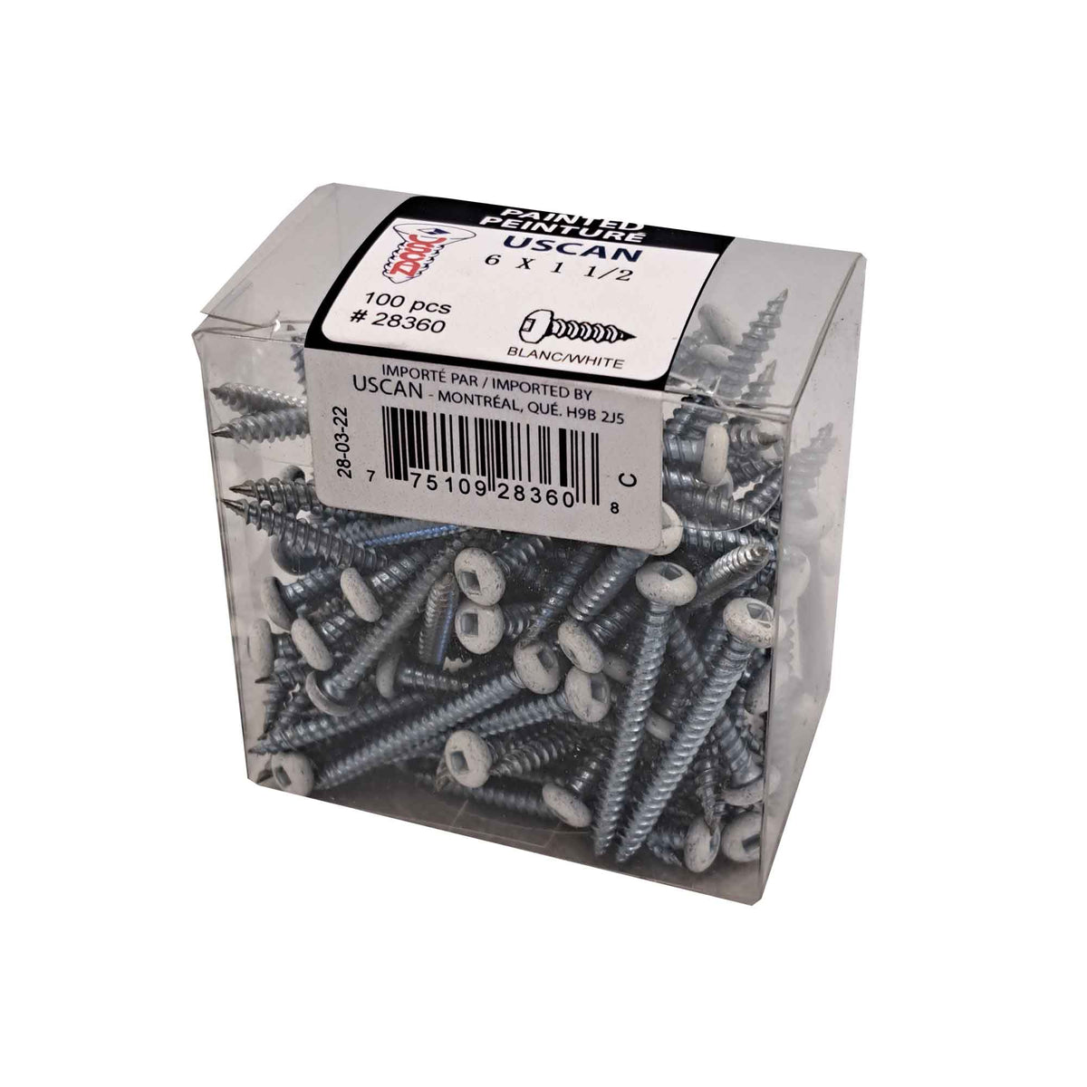 • Pan head steel screw for metal • Head color: white • Dimensions: #6 x 1-1/2" • Box of 100 units