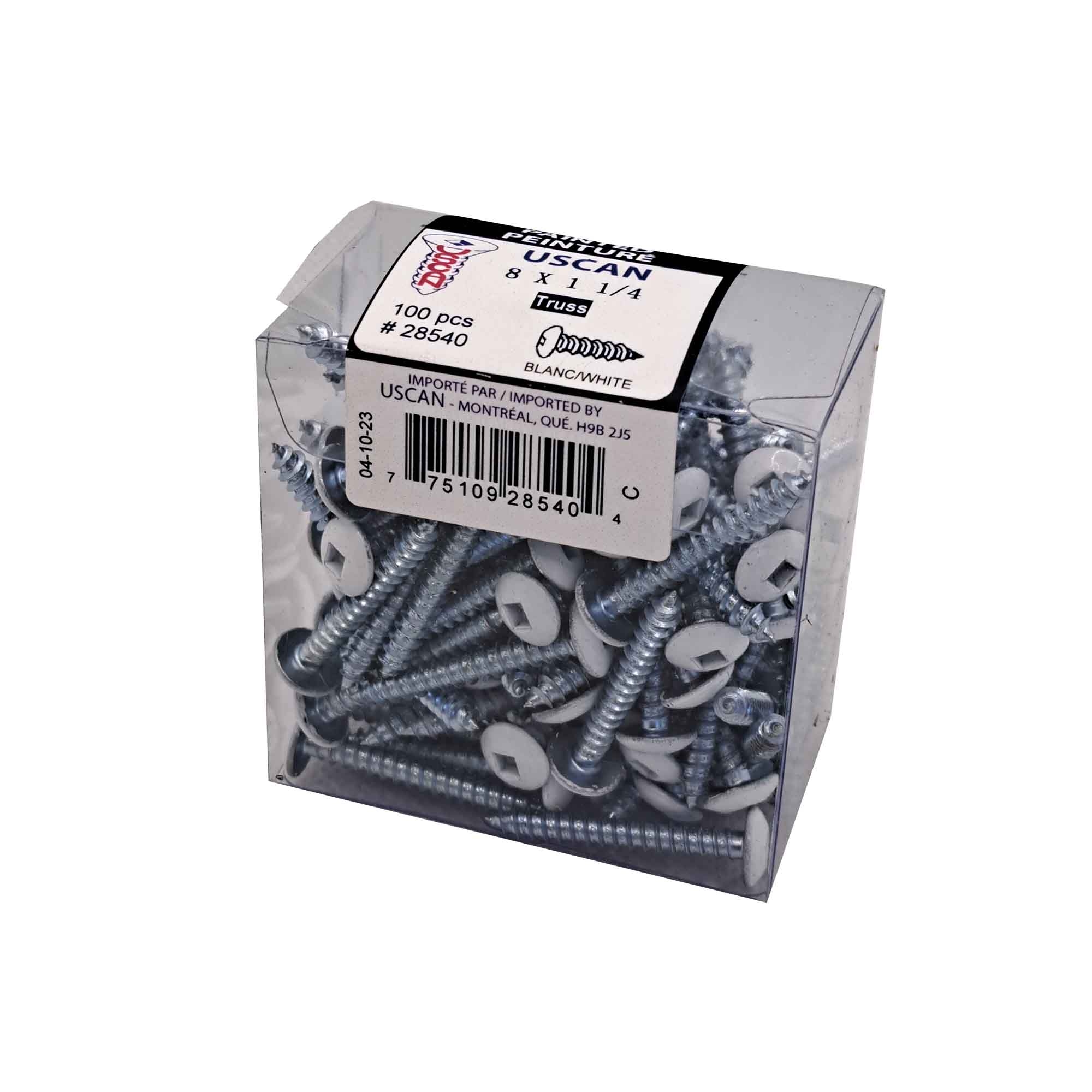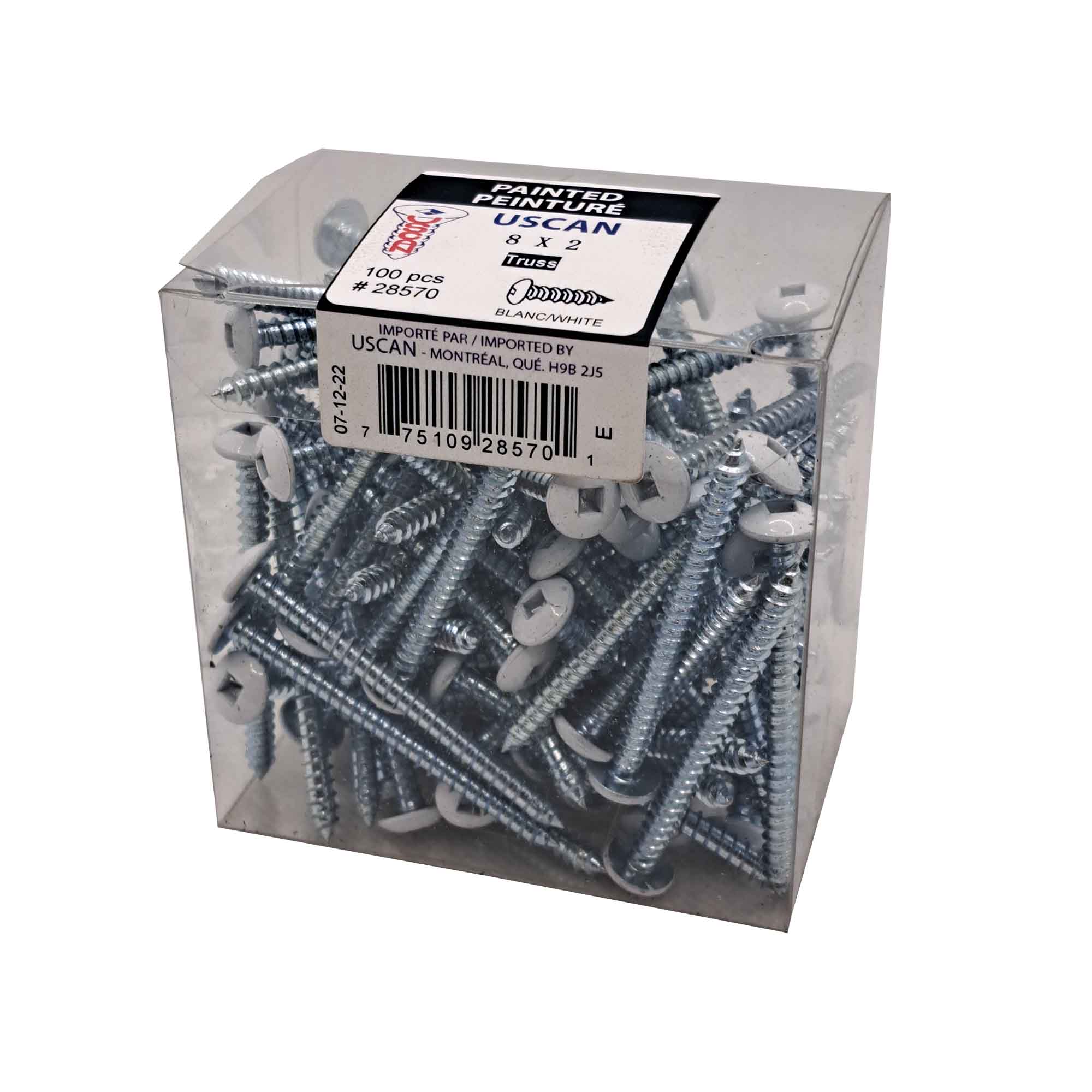 • Square truss head metal screw • Head color: white • Dimensions: #8 x 1/2" • Box of 100 units